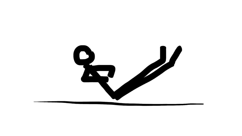 Готовы к новому вызову? Планку у нас сменяет уголок. Начнём с несложного — с 1 минуты. Но держать надо до конца. Сели на пол, руки сложили на груди и подняли ножки ровные над полом. Держим одну минуту.