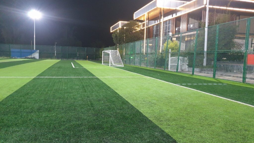 Погода — прекрасная. Плюс 25 градусов. Поле — абсолютно новое и закреплено за нашей командой. Организаторы позаботились о том, чтобы у каждой команды-участницы была своя отдельная тренировочная площадка.